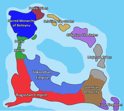 It was also around this time that Yeudi emigration away from Beiteynu began. Those that moved south ended up few in number as the met the growing power of the Tokundian Empire, but large Yeudi communities formed in Pontesi, Selucia and Cildania.